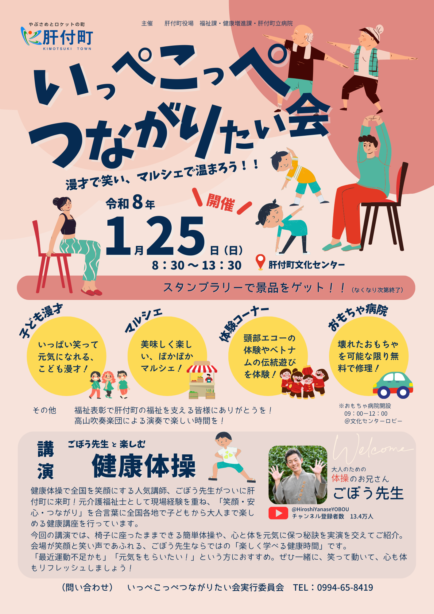 2026年1月25日(日曜日)、肝付町文化センターにて、子どもから大人までみんなが主役のイベント「いっぺこっぺつながりたい会」を開催します!
