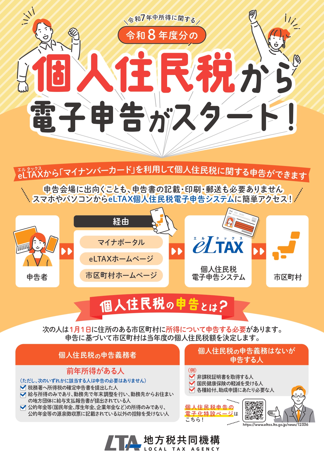 個人住民税申告について、令和8年度分(令和7年中の所得に対する申告)から、電子申告が開始されます。