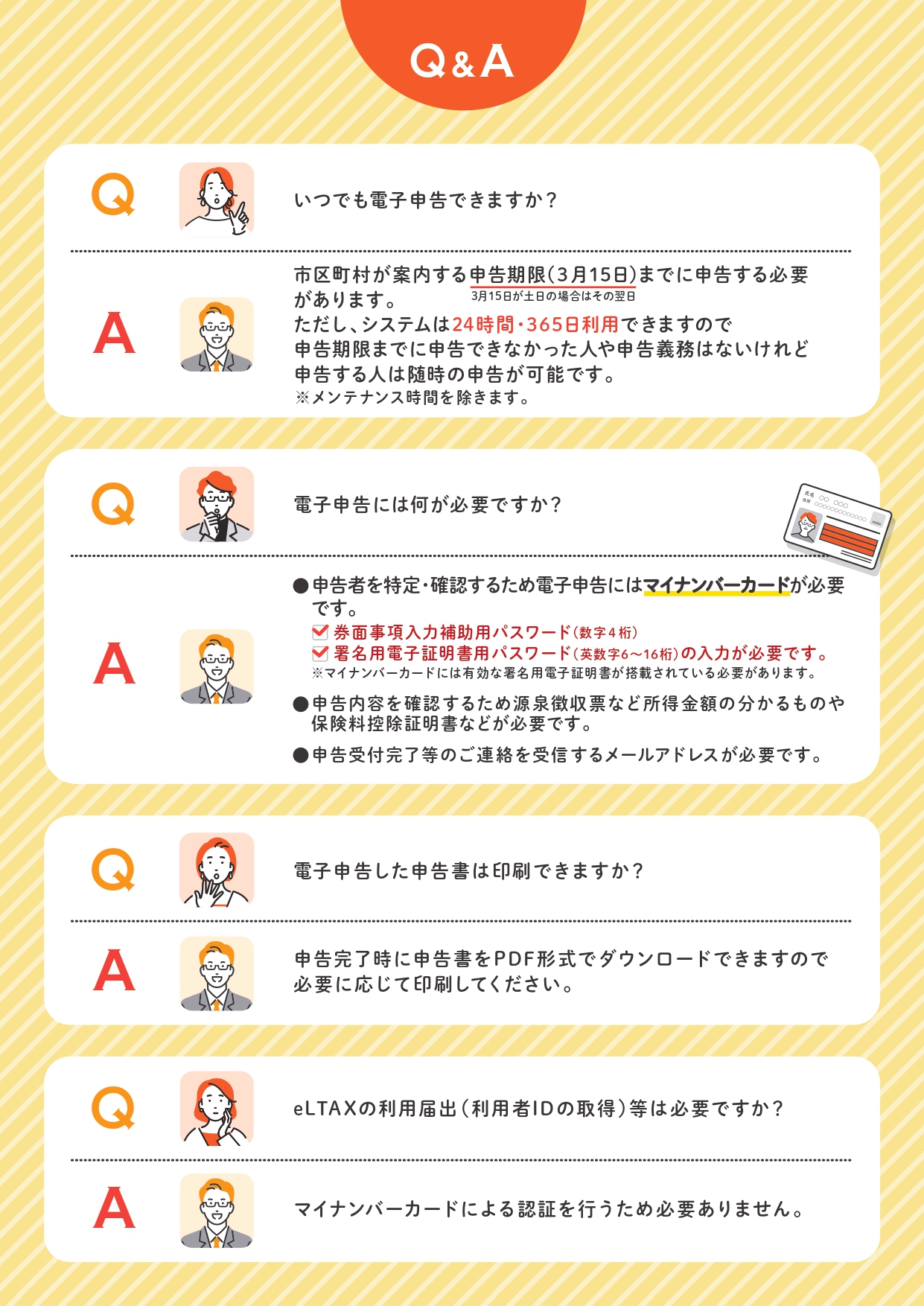 スマートフォンやパソコンから、マイナンバーカードを利用して、eLTAX(エルタックス)※のホームページやマイナポータル、町ホームページを経由して、個人住民税の申告手続きが開始される予定です。